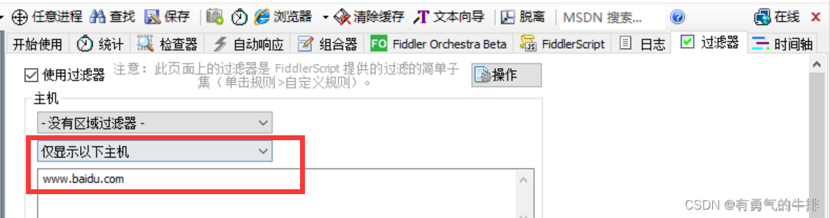 <pre><div class="hljs"><code class="lang-javascript"><span class="hljs-keyword">if</span>(oSession.<span class="hljs-title class_">HostnameIs</span>(<span class="hljs-string">"www.baidu.com"</span>))
