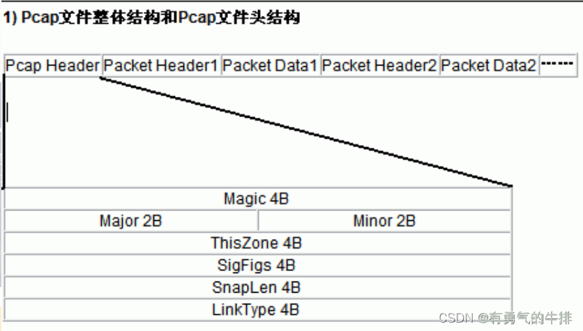<td>Pachet Header可以有多个,每个Packet Header后面会跟一串Packet Data, Packet Header定义了Packet Data的长度、时间戳等信息</td>